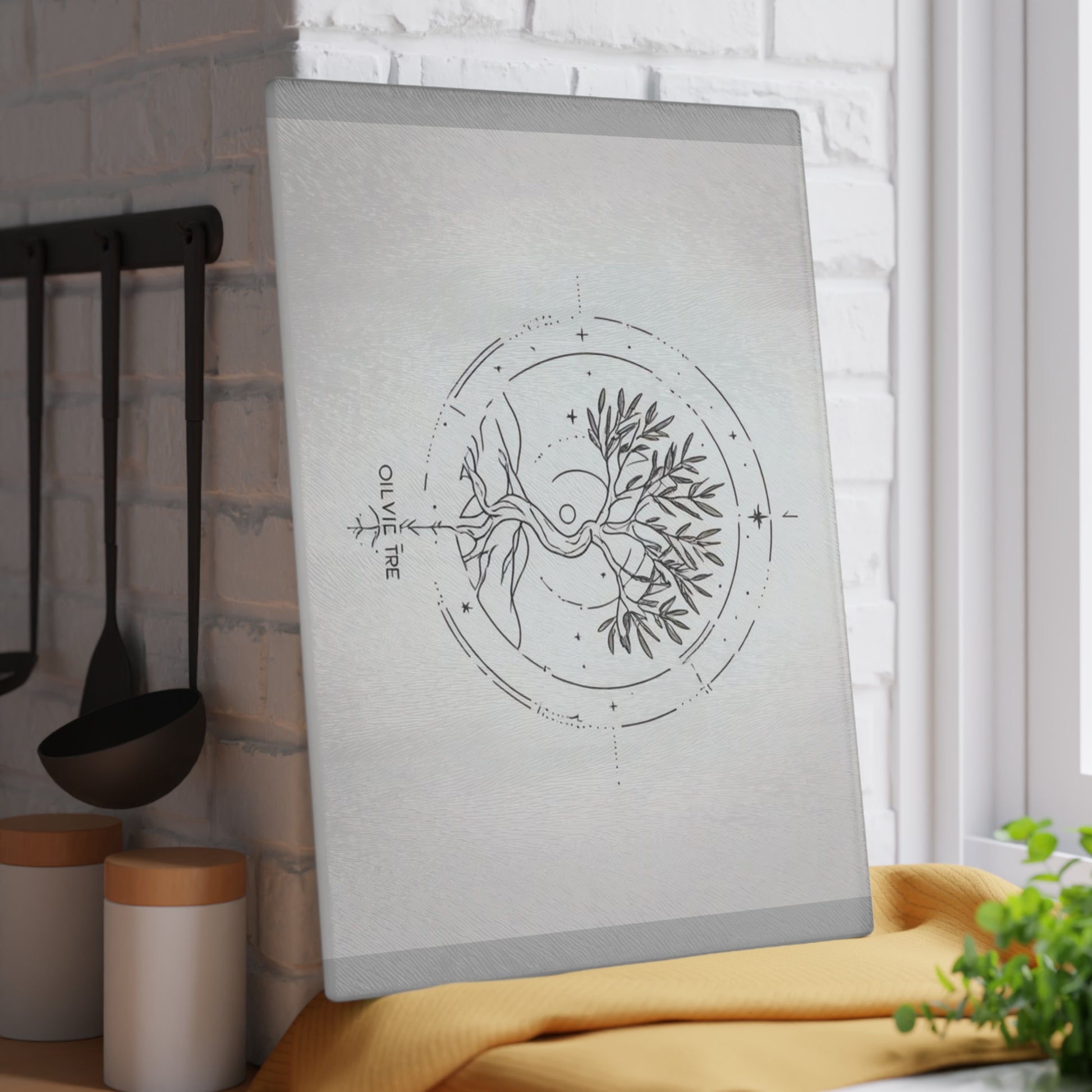 Elegant Glass Cutting Board with Tree of Life Design, Kitchen Decor, Wedding Gift, Housewarming Gift, Culinary Gift