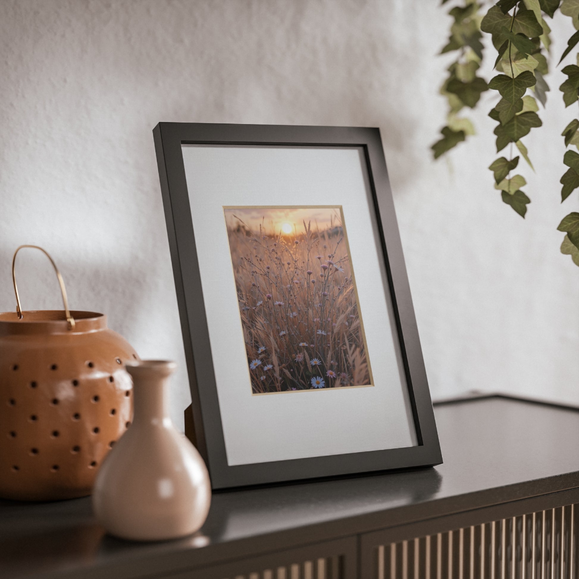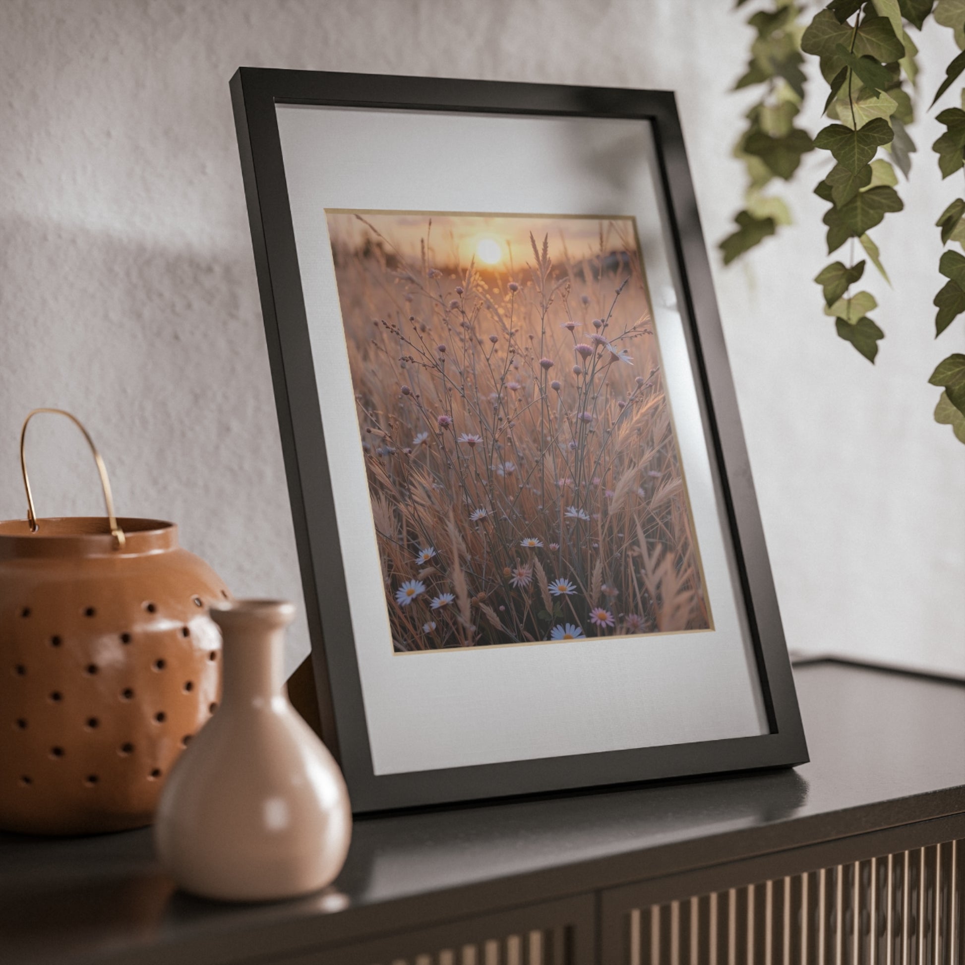 Framed Black Art Print, Modern Wall Decor, Minimalist Home Aesthetic, Flower Sunset Poster, Gift for Nature Lovers, Boho Wall Art