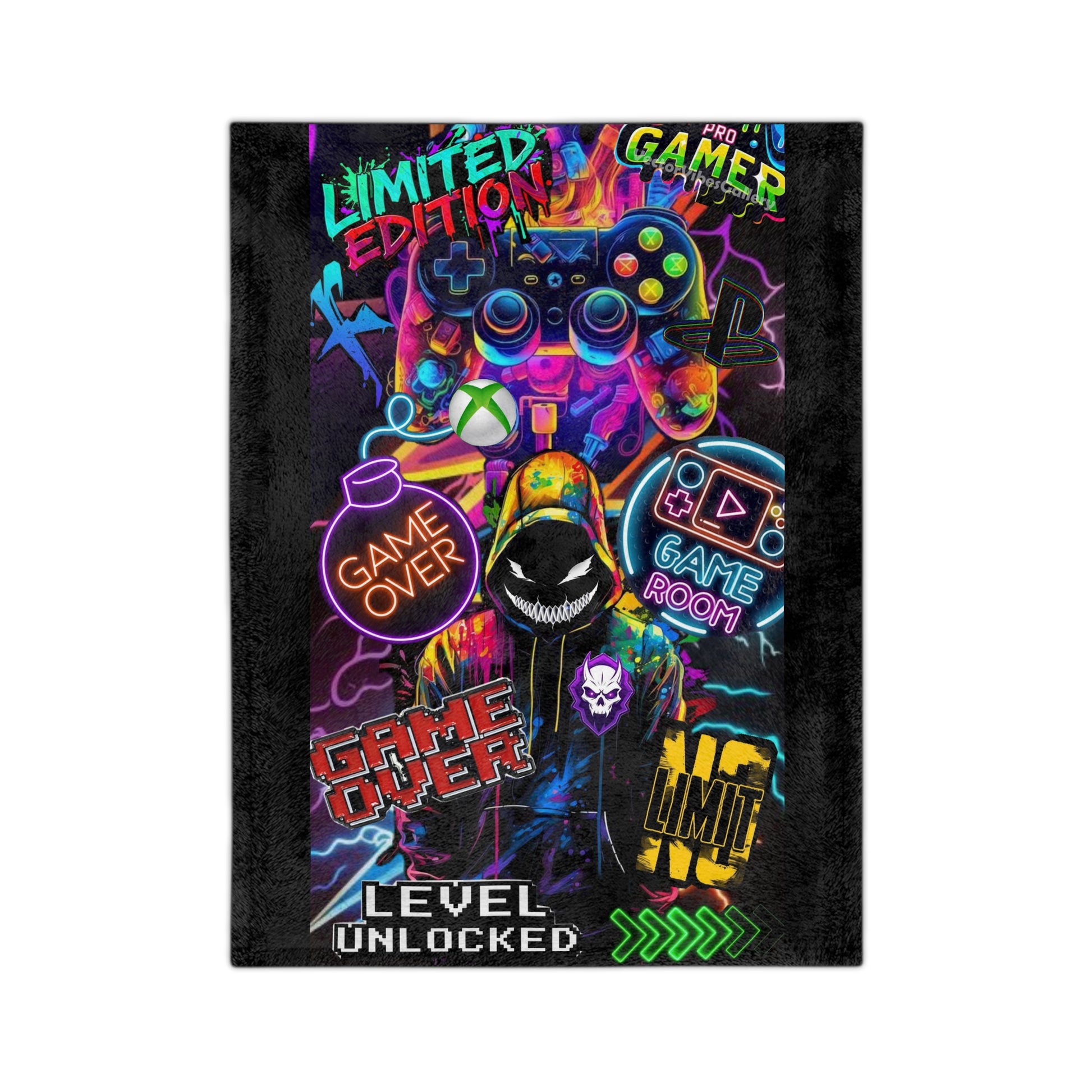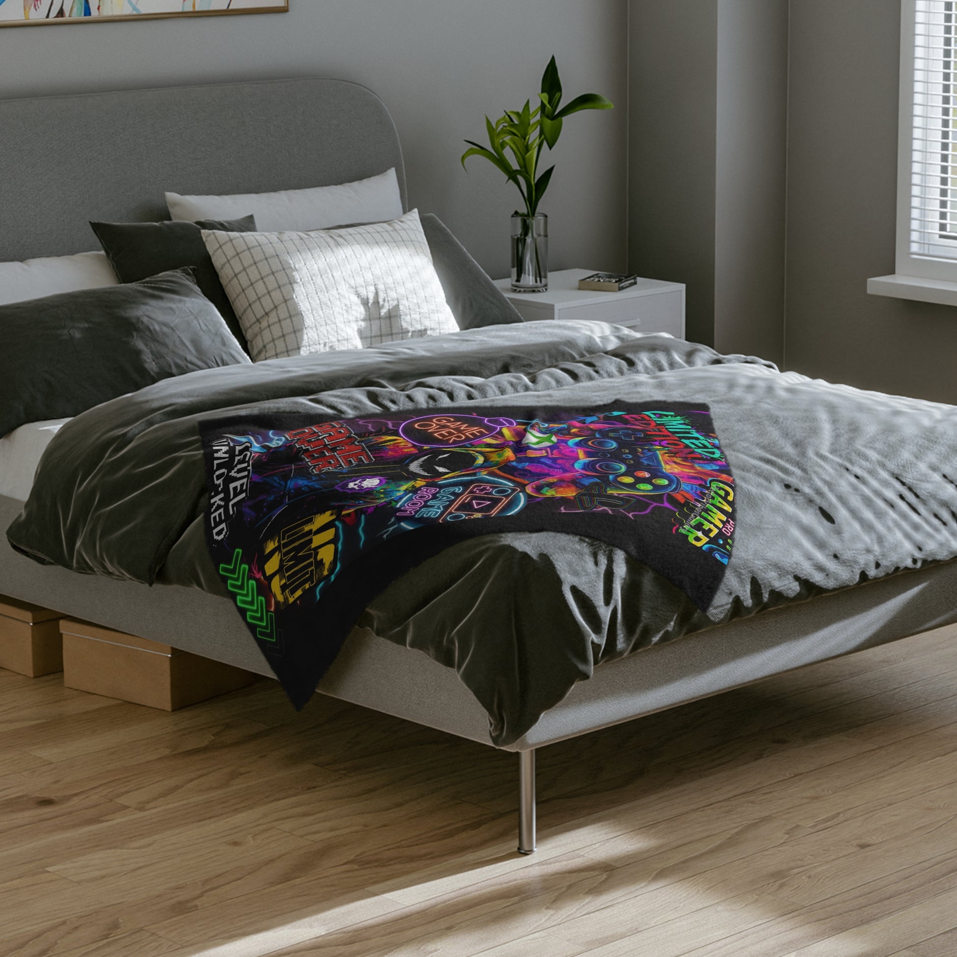 Gamer Themed Blanket, Cozy Game Room Throw, Velveteen Microfiber Blanket, Gaming Gift for Gamers, Limited Edition Gamer Decor