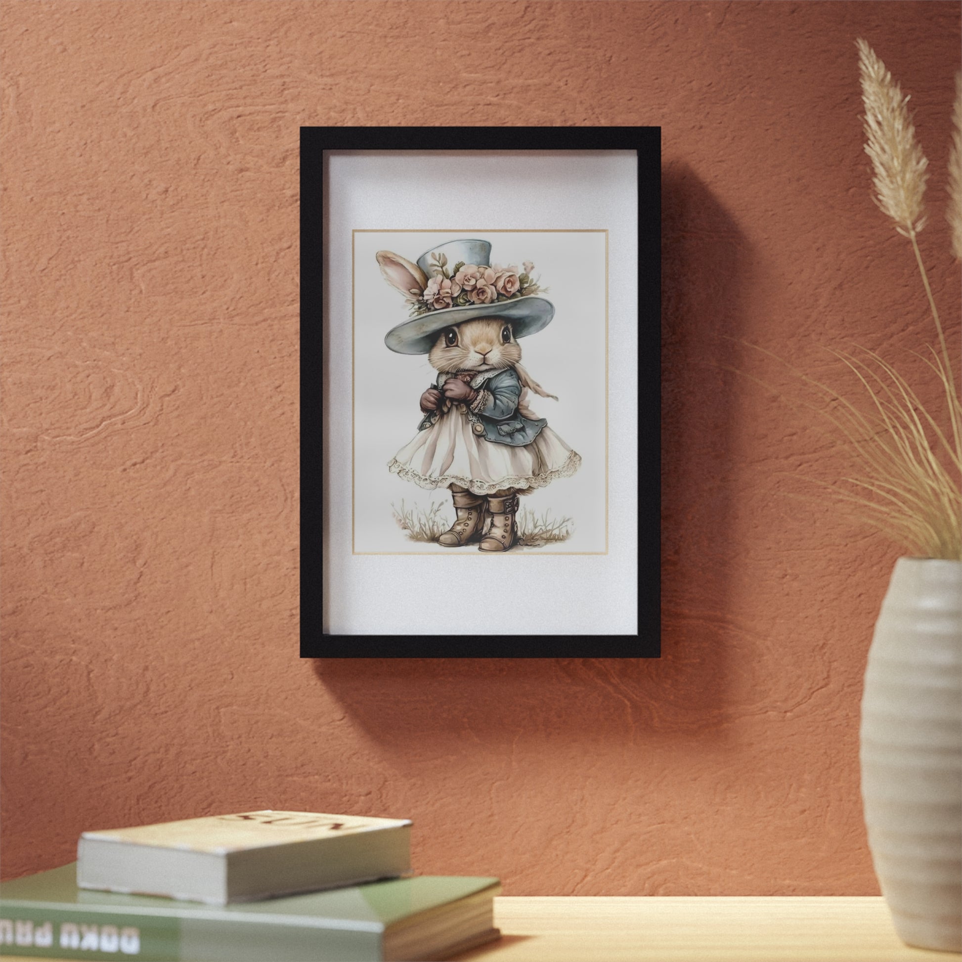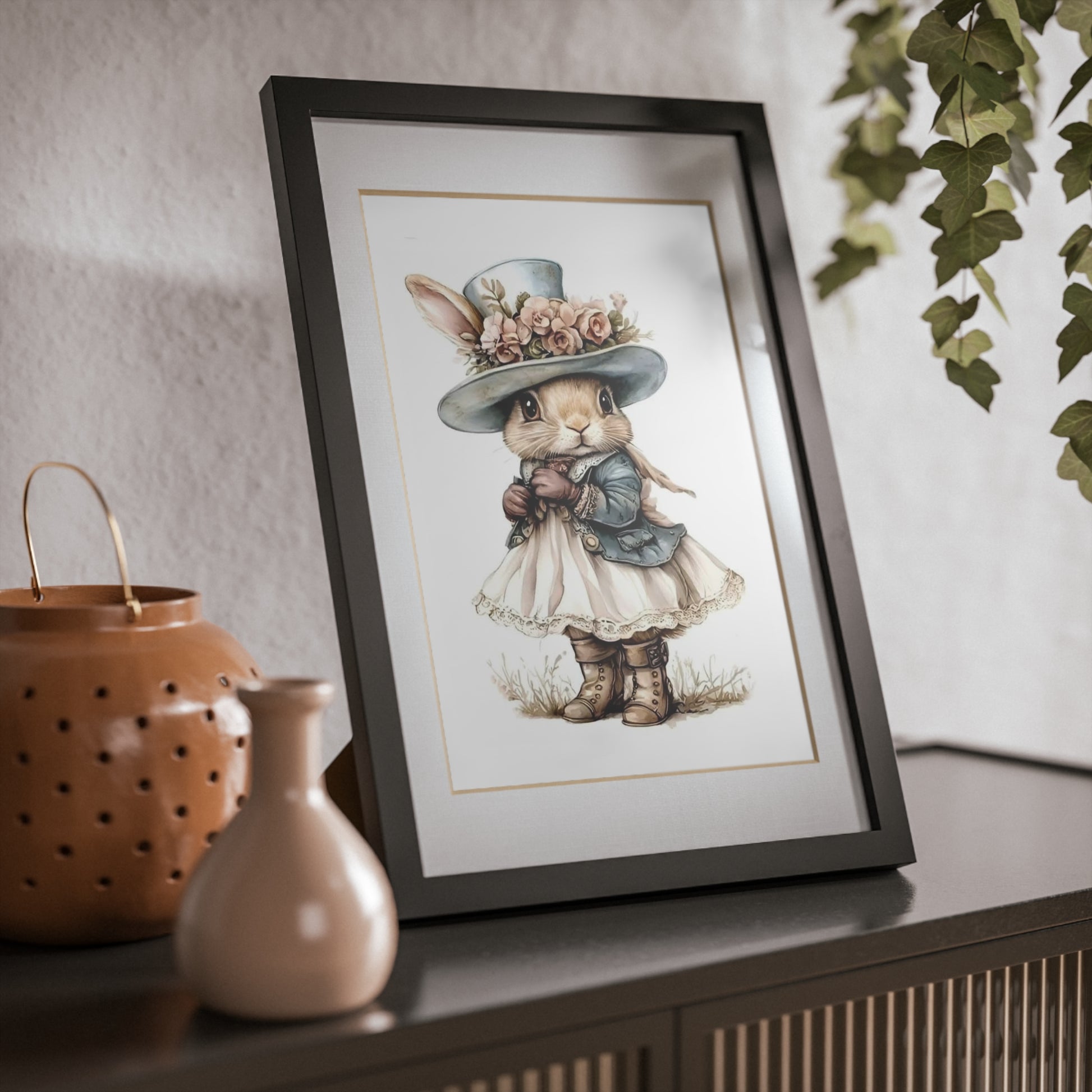 Whimsical Bunny Art Print, Framed Poster for Nursery Decor, Cute Animal Wall Art, Perfect Baby Shower Gift, Kids Room Decoration