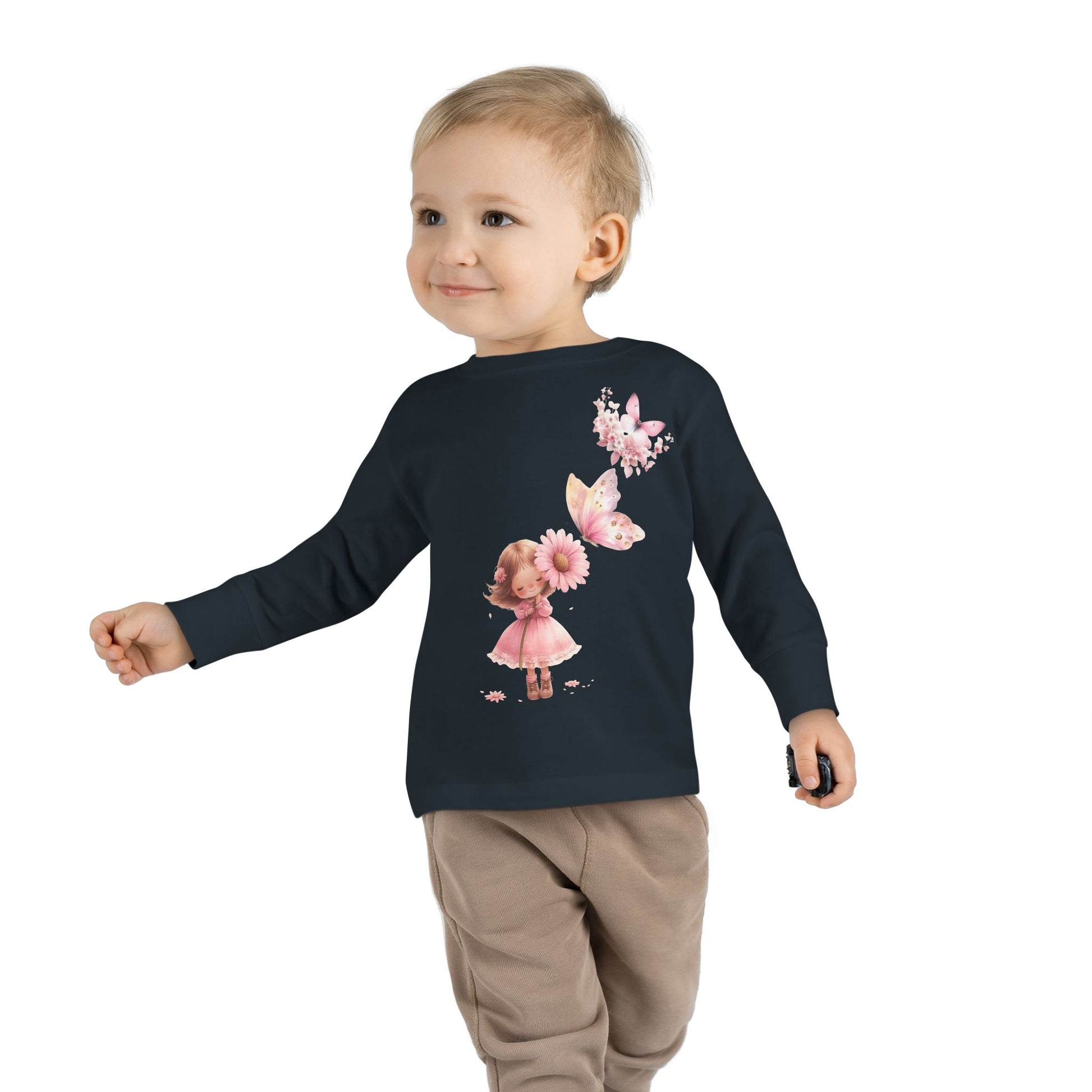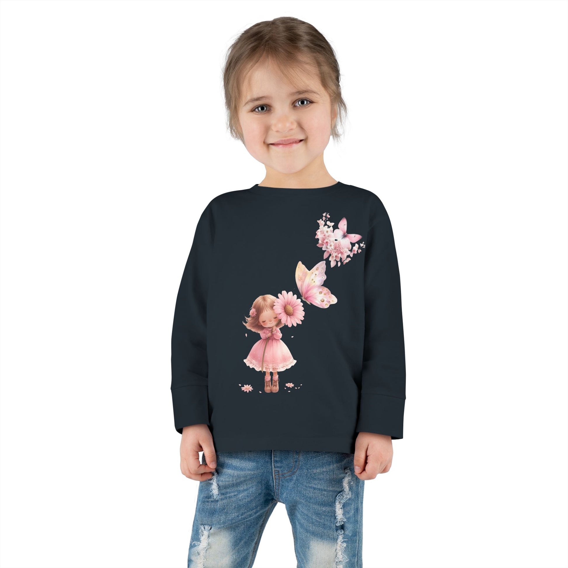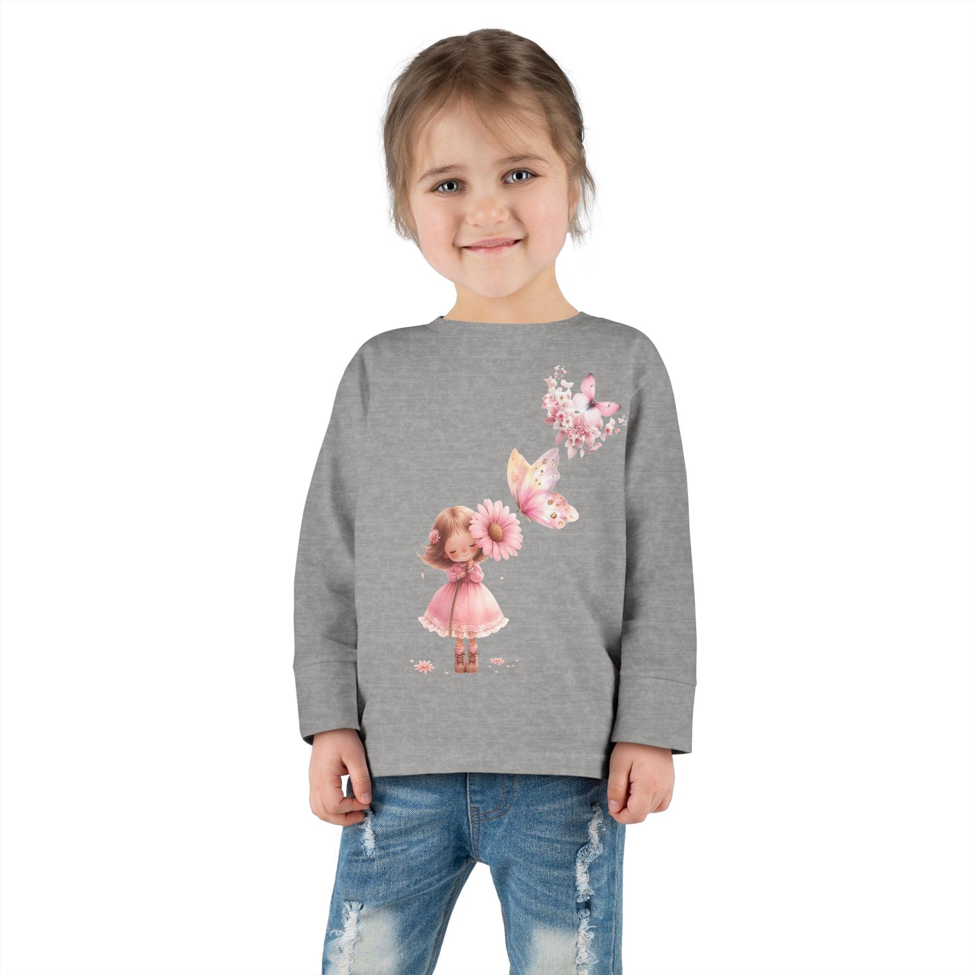 Whimsical Toddler Long Sleeve Tee with Fairy and Butterflies Design, Cute Girls Shirt, Toddler Gift, Spring Outfit, Birthday Celebration